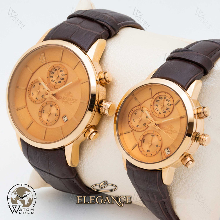 ساعت مچی عقربه ای ست زنانه و مردانه الگانس ۴موتوره کرنوگراف با موتور میوتای ژاپن و متریال قاب استیل و بند چرم با کیفیت همراه جعبه زیبا و یکسال گارانتی. همه موتورها فعال و همه عقربه ها کار میکنند