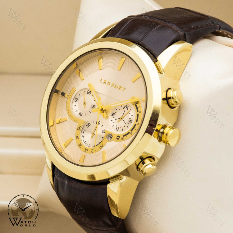 ساعت مچی عقربه ای مردانه برند اورجینال لدفورت با موتور ژاپن و متریال قاب استیل و بند چرم با کیفیت به همراه جعبه و پاکت زییا و یکسال گارانتی.