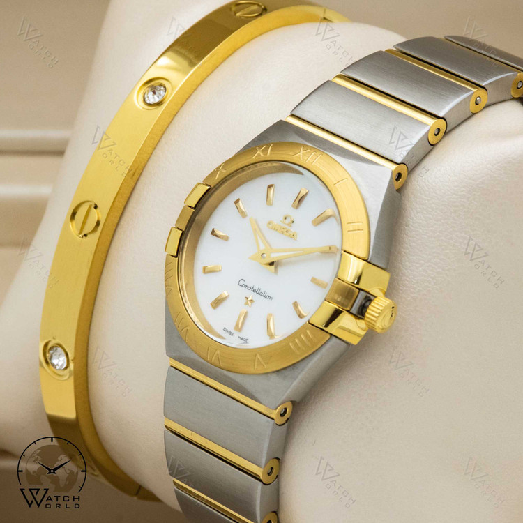 ساعت مچی عقربه ای زنانه اُمگا کانسلیشن با موتور سوئیس و متریال قاب و بند استینلس استیل همراه با دستبند کارتیر استیل و جعبه زیبا و یکسال گارانتی.
