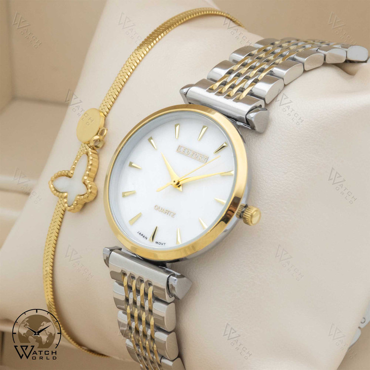 ساعت مچی عقربه ای زنانه برند اورجینال لدفورت با موتور میوتای ژاپن و متریال قاب و بند استینلس استیل به همراه جعبه و پاکت زیبا و یکسال گارانتی.