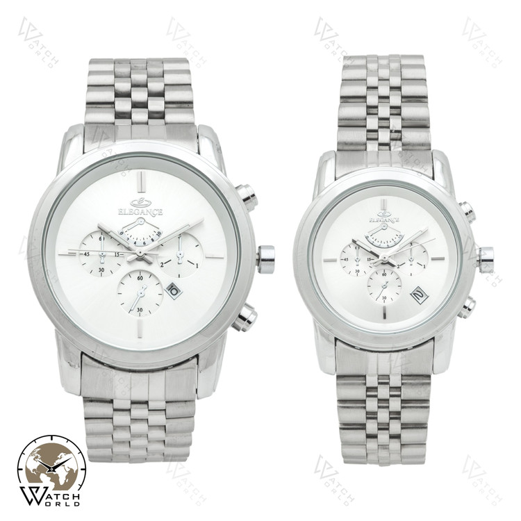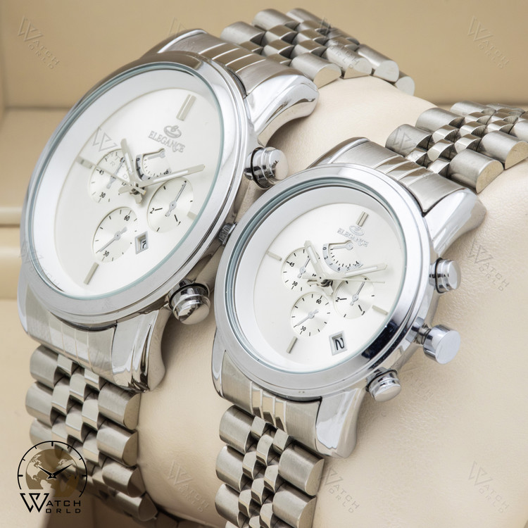 ساعت مچی عقربه ای ست زنانه و مردانه الگانس با موتور ژاپن و متریال قاب و بند استیل به همراه جعبه زیبا و یکسال گارانتی.