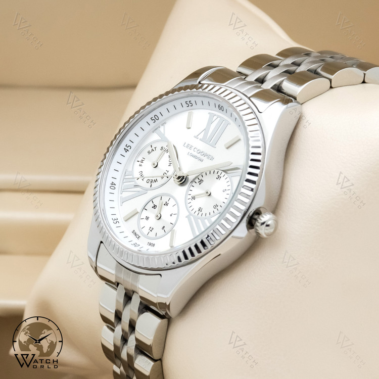ساعت مچی عقربه ای زنانه ۴ موتوره برند اورجینال لی کوپر با موتور میوتای ژاپن و متریال قاب و بند استینلس استیل به همراه جعبه و پاکت زیبا و یکسال گارانتی.