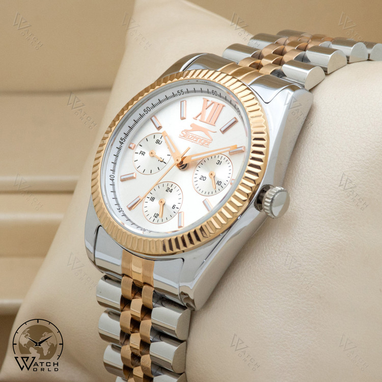 ساعت مچی عقربه ای زنانه ۴ موتوره برند اورجینال اسلازنگر با موتور میوتای ژاپن و متریال قاب و بند استینلس استیل به همراه جعبه و پاکت زیبا و یکسال گارانتی.