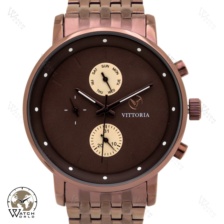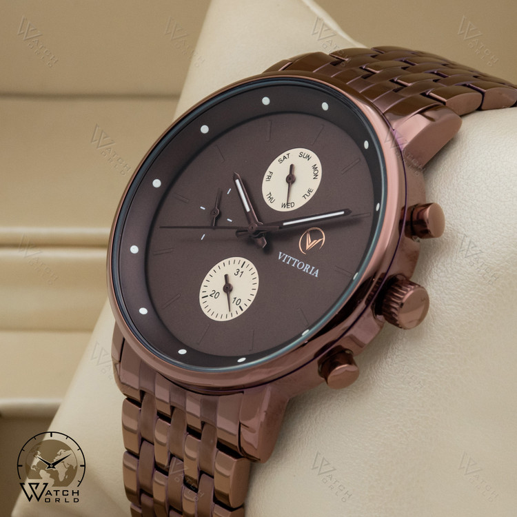 ساعت مچی عقربه ای مردانه ۴موتوره برند اورجینال ویتوریا با موتور میوتای ژاپن و متریال قاب و بند استینلس استیل به همراه جعبه زیبا و یکسال گارانتی.