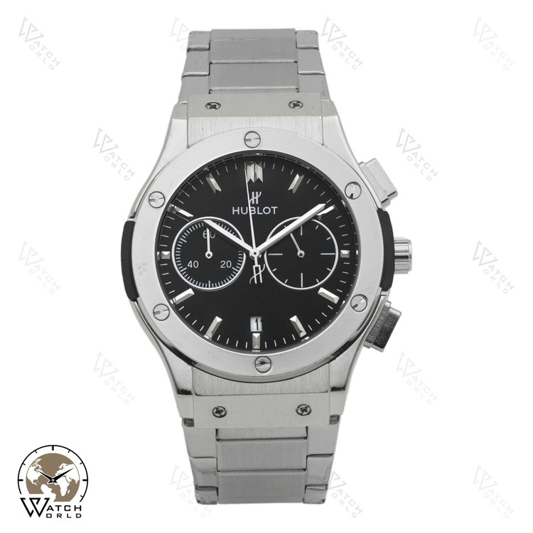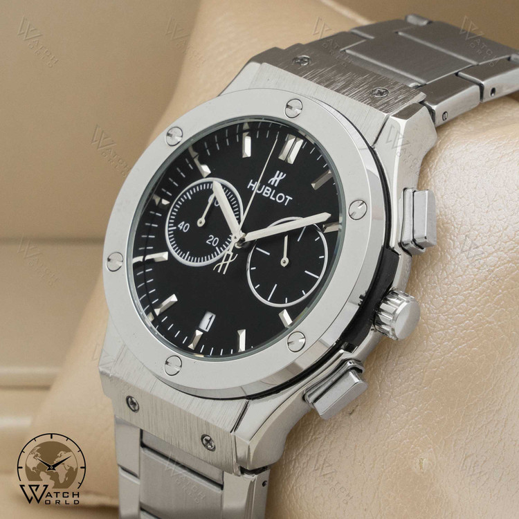 ساعت مچی عقربه مردانه هابلوت کرنوگراف ۴موتوره با موتور چین درجه یک و متریال قاب و بند استیل به همراه جعبه و پاکت زیبا و یکسال گارانتی.