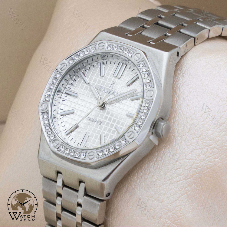ساعت مچی عقربه ای زنانه برند اورجینال هامان باموتور میوتای ژاپن و متریال قاب و بند استیل به همراه جعبه و پاکت زیبا و یکسال گارانتی مناسب خانم ها و دختران میباشد