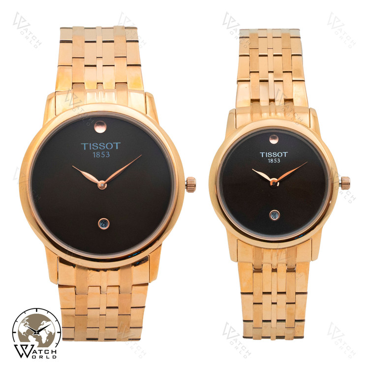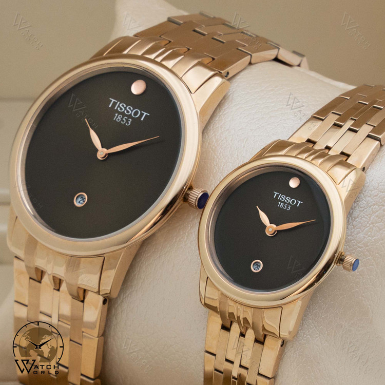 ساعت مچی عقربه ای ست زنانه و مردانه برند تیسوت با موتور میوتای ژاپن و متریال قاب و بند استینلس استیل ضد حساسیت و ضد آب و ظرافت بسیار زیبا به همراه جعبه و پاکت زیبا و یکسال گارانتی.