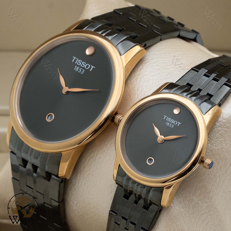 ساعت مچی عقربه ای ست زنانه و مردانه برند تیسوت با موتور میوتای ژاپن و متریال قاب و بند استینلس استیل ضد حساسیت و ضد آب و ظرافت بسیار زیبا به همراه جعبه و پاکت زیبا و یکسال گارانتی.