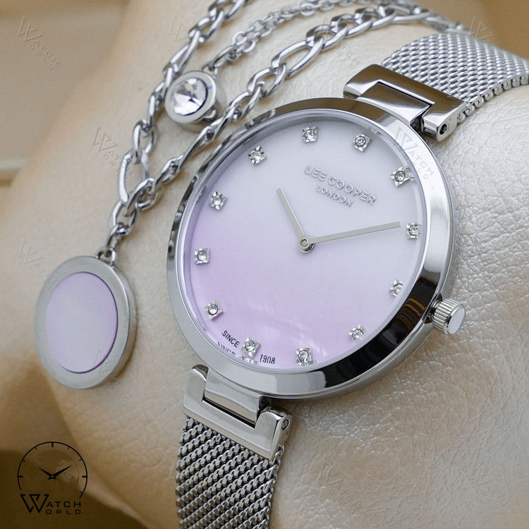 ساعت مچی عقربه ای زنانه برند اورجینال لی کوپر با موتور میوتای ژاپن و متریال قاب و بند استینلس استیل به همراه گردنبند بسیار زیبا و جعبه و پاکت و یکسال گارانتی.
