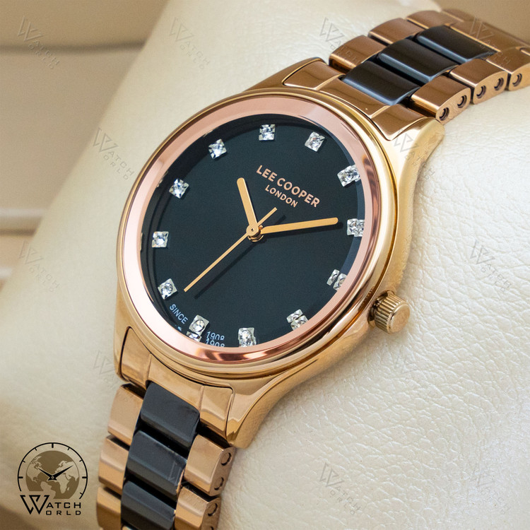 ساعت مچی عقربه ای زنانه برند اورجینال لی کوپر با موتور میوتای ژاپن و متریال قاب و بند استینلس استیل و سرامیکی به همراه جعبه و پاکت زیبا و یکسال گارانتی.