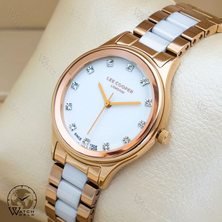 ساعت مچی عقربه ای زنانه برند اورجینال لی کوپر با موتور میوتای ژاپن و متریال قاب و بند استینلس استیل و سرامیکی به همراه جعبه و پاکت زیبا و یکسال گارانتی.