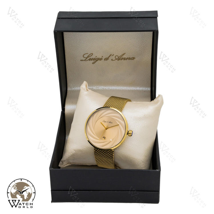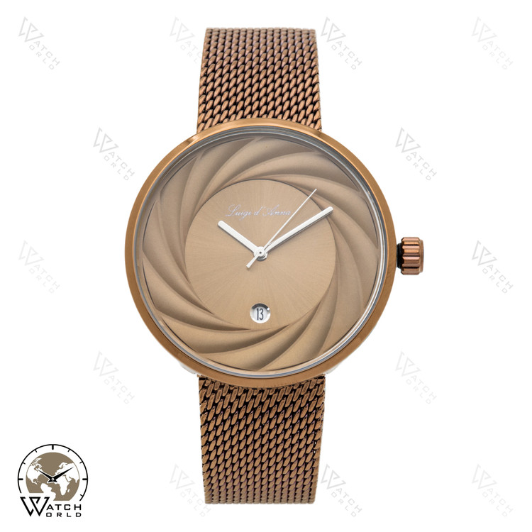 ساعت مچی عقربه ای برند اورجینال ال دی ای(LdA) با موتور میوتای ژاپن،دارای نشانگر روزهای ماه و متریال قاب و بند استیل با بند حصیری باکیفیت به همراه جعبه و پاکت زیبا و یکسال گارانتی مناسب برای آقایان و خانم ها