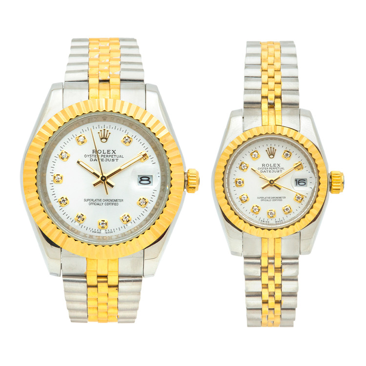 ساعت مچی عقربه ای ست زنانه و مردانه رولکس دیت جاست با موتور میوتای ژاپن و متریال قاب و بند استیل به همراه جعبه و پاکت زیبا و یکسال گارانتی.