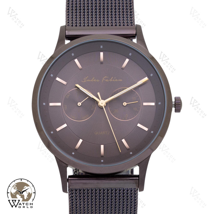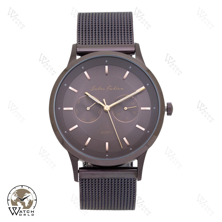 ساعت مچی عقربه ای مردانه برند اورجینال ژول فابین با موتور میوتای ژاپن و متریال قاب و بند استینلس استیل رنگ ثابت ضد آب به همراه جعبه و پاکت زیبا و یکسال گارانتی.
