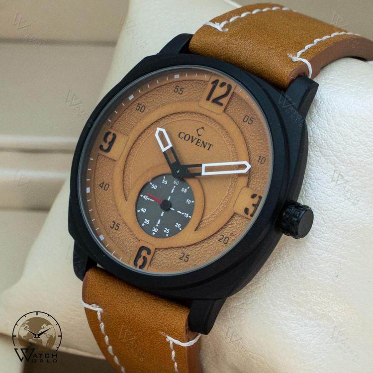 ساعت مچی عقربه ای مردانه برند کاونت با موتور چین درجه یک و متریال قاب استیل و بند چرم با کیفیت به همراه جعبه زیبا و یکسال گارانتی.