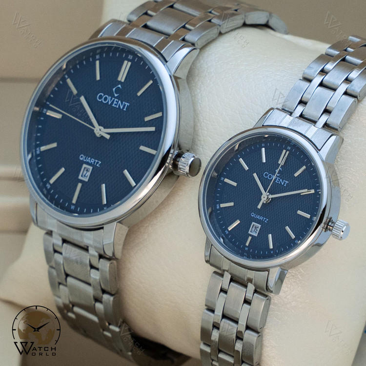 ساعت مچی عقربه ای ست زنانه و مردانه برند کاونت با موتور چین درجه یک و متریال قاب و بند استیل به همراه جعبه زیبا و یکسال گارانتی.
