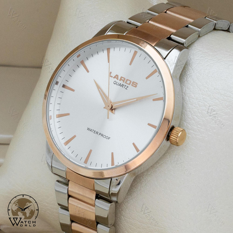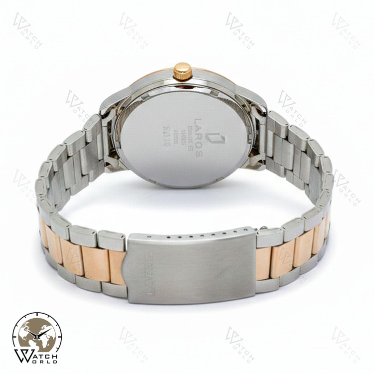 ساعت مچی عقربه ای مردانه برند لاروس با موتور ژاپنی و متریال قاب و بند استیل به همراه جعبه و پاکت زیبا و یکسال گارانتی.