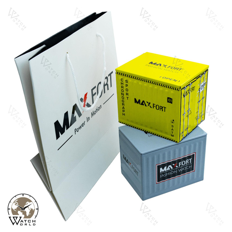 ساعت مچی دو زمانه مردانه برند اورجینال مکسفورت با موتور ژاپن و متریال قاب رزین و بند پیو باکیفیت ضددآب 5ATMبه همراه جعبه و پاکت زیبا و یکسال گارانتی.