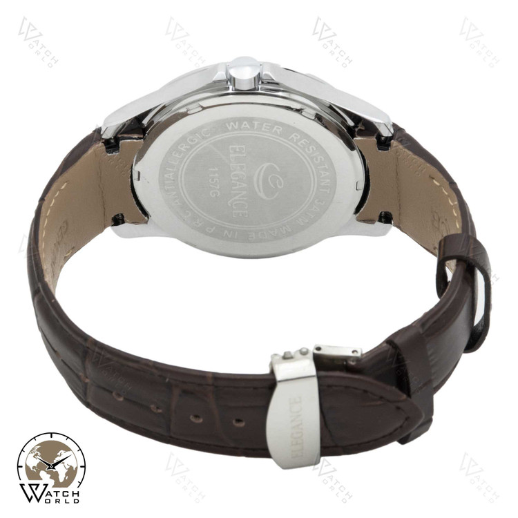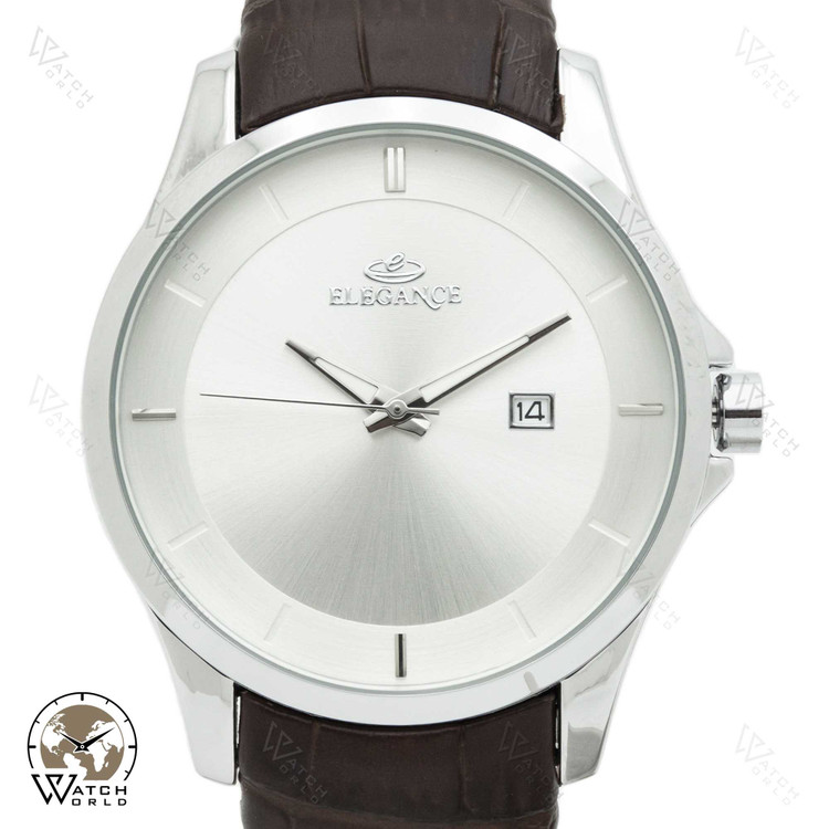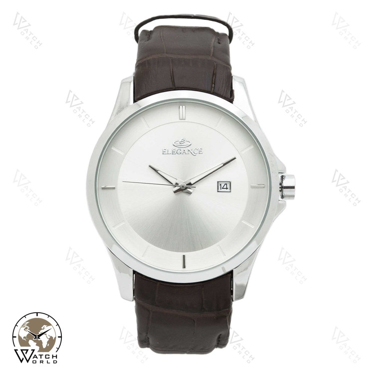 ساعت مچی عقربه ای مردانه الگانس با موتور ژاپن و متریال قاب استیل و بند چرم با کیفیت به همراه جعبه و پاکت زیبا و یکسال گارانتی.