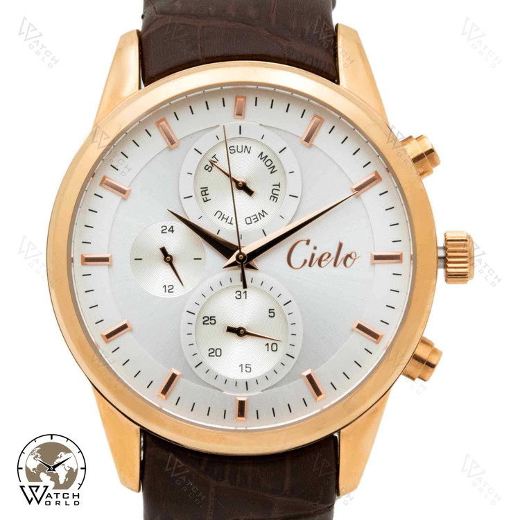 ساعت مچی عقربه ای مردانه ۴موتوره برند اورجینال سیلو با موتور میوتای ژاپن و متریال قاب استینلس استیل و بند چرم با کیفیت به همراه جعبه و پاکت زیبا و یکسال گارانتی.