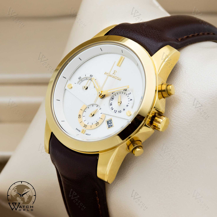 ساعت مچی عقربه ای زنانه ۴موتوره کرنوگراف رومانسون با موتور میوتای ژاپن و متریال قاب استیل و بند چرم با کیفیت به همراه جعبه و پاکت زیبا و یکسال گارانتی.